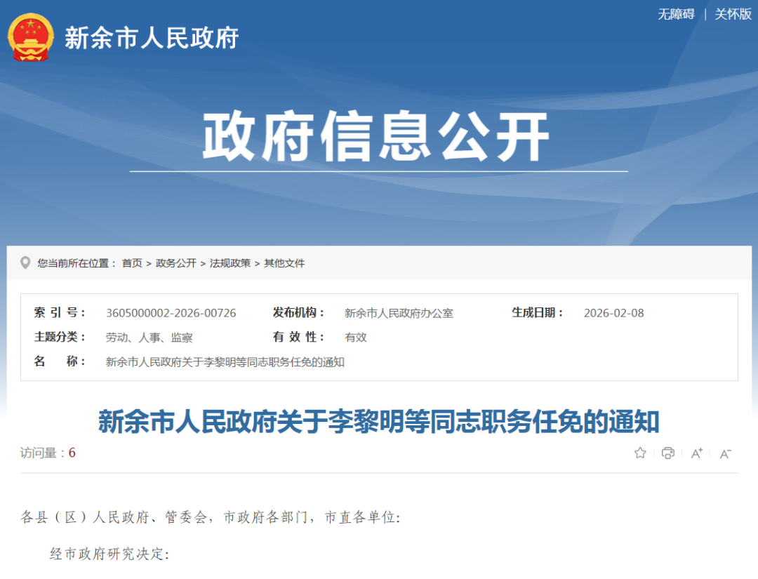 新余市人民政府关于李黎明等同志职务任免的通知