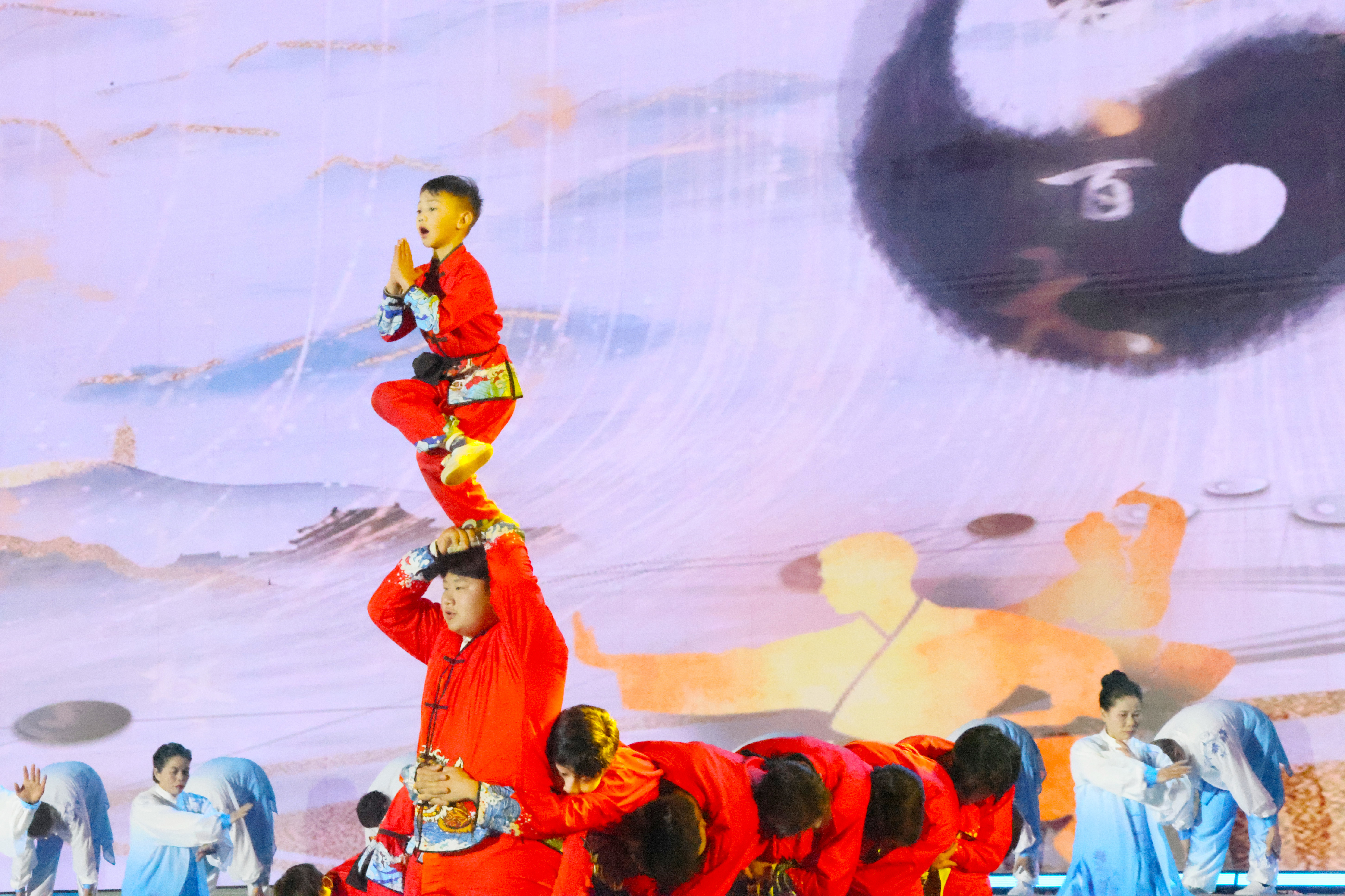 武术表演《行云流水》,将太极的刚柔并济与武术的豪迈勇猛完美结合,展现赣州人的精气神,其中最小演员年仅7岁。