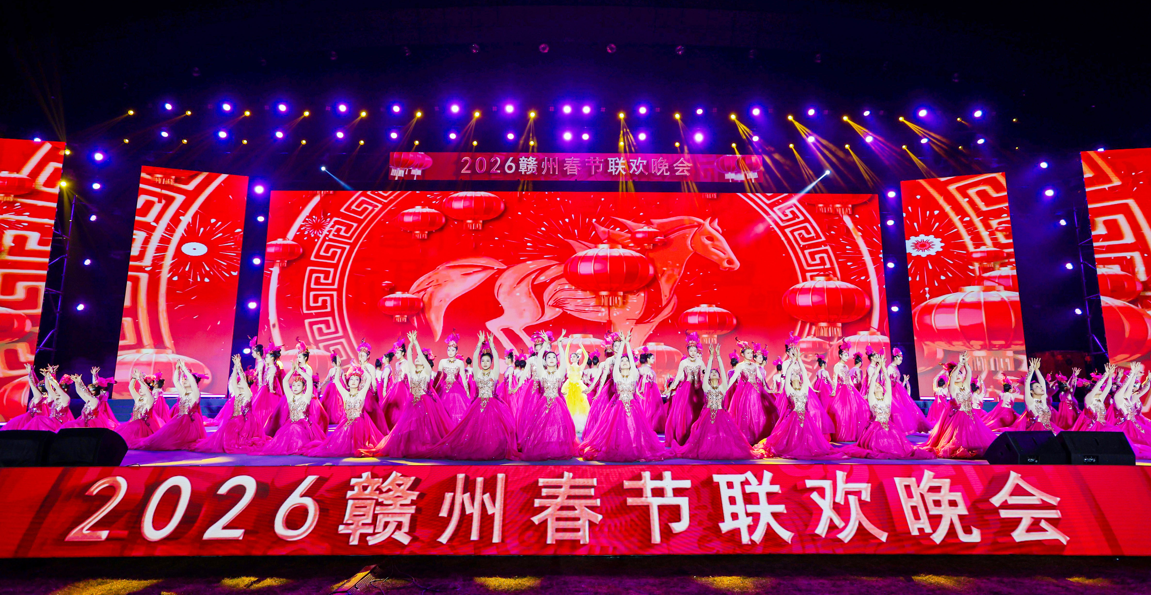 赣南红客户端讯(记者黄松林/文 记者肖靓 孙平 通讯员郭素敏 胡秀宁/图)骏马奔腾迎新春,客家欢歌庆团圆。2月12日晚,由赣州市委宣传部指导,赣州市融媒体中心、赣州文化传媒集团主办的2026年赣州春节联欢晚会在宁都县体育中心浓情上演。