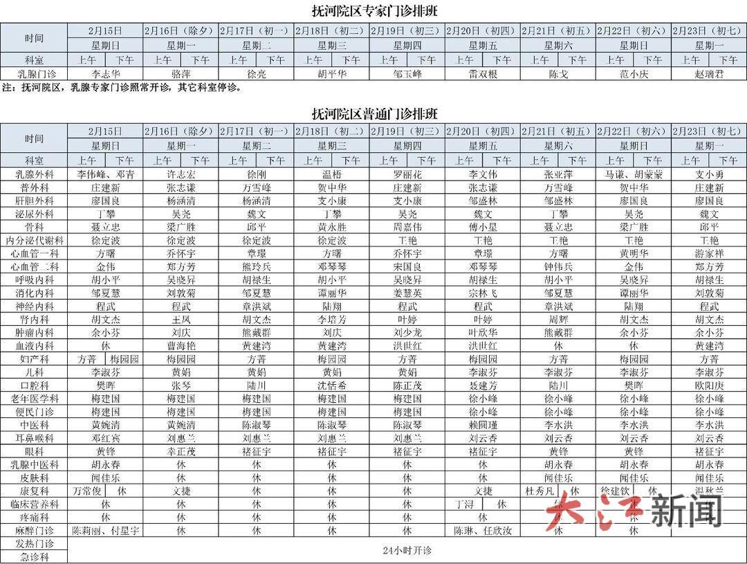 2月15日—23日,抚河院区、朝阳院区急诊、发热门诊24小时开诊 。