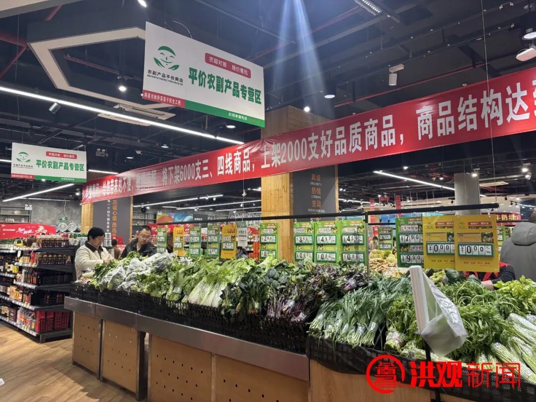 在华润万家红谷滩店,店总沈顺辉指着忙碌补货的员工说:“针对春节来临,我们严格执行平价商品对标市场,确保不断货、不缺货、不空架。每日平价商品安排专人跟进以上工作。”