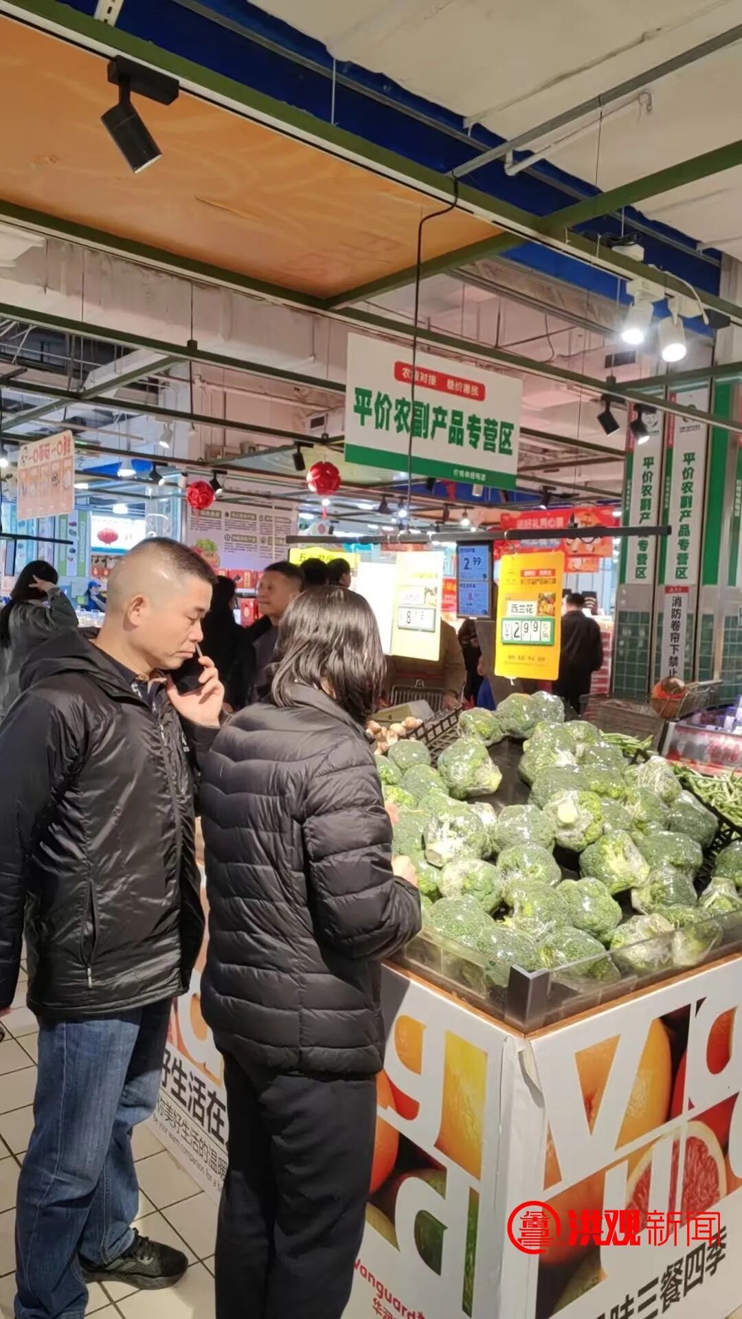 走进位于南昌高新区艾湖路的旺中旺超市,“平价农副产品专营区(直销区)”的标识格外醒目。货架上,包菜、大白菜、西蓝花等蔬菜码放得整整齐齐,不时有顾客拿起,仔细比对价格。