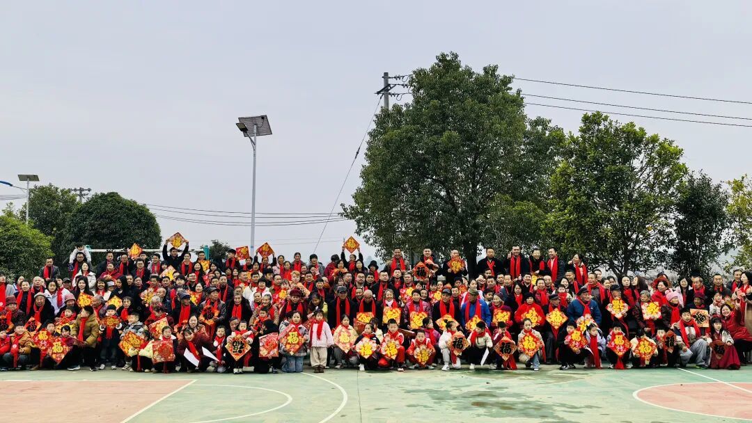 村晚早已成为钟溪村刻在年味里的约定,这一次依旧是全村参与、全民同乐的热闹光景。在外打拼的游子归乡、村里的老人孩童齐聚、外嫁的女儿们携家回村,几百位村民身着节日盛装拍下的“全村福”,定格了团圆的笑脸,更凝聚起心往一处想、劲往一处使的钟溪力量。