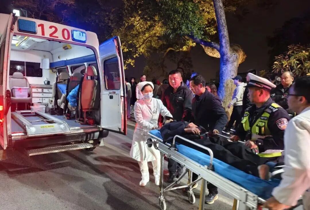 游客现场求助,医护人员紧急响应,护送伤员就医。