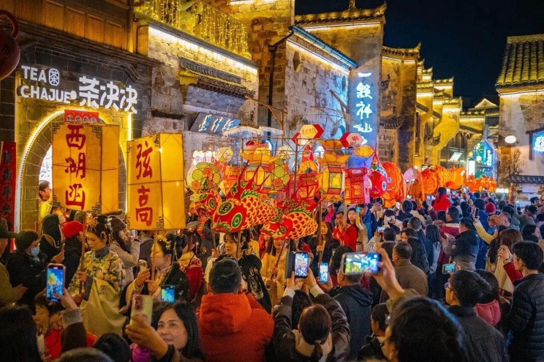 非遗从静态的“陈列品”,蜕变为可参与、可沉浸的鲜活体验——在江湾古街参与实景剧本杀,在李坑偶遇宋韵婚礼,在篁岭体验特色民俗,在弦高亲手触摸鱼灯夜游。文化真正走进了大众的生活。