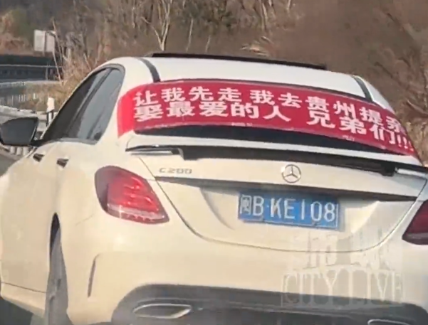 近日,一辆悬挂“让我先走,我去贵州提亲,娶最爱的人,兄弟们!”横幅的闽B牌照轿车引发关注。