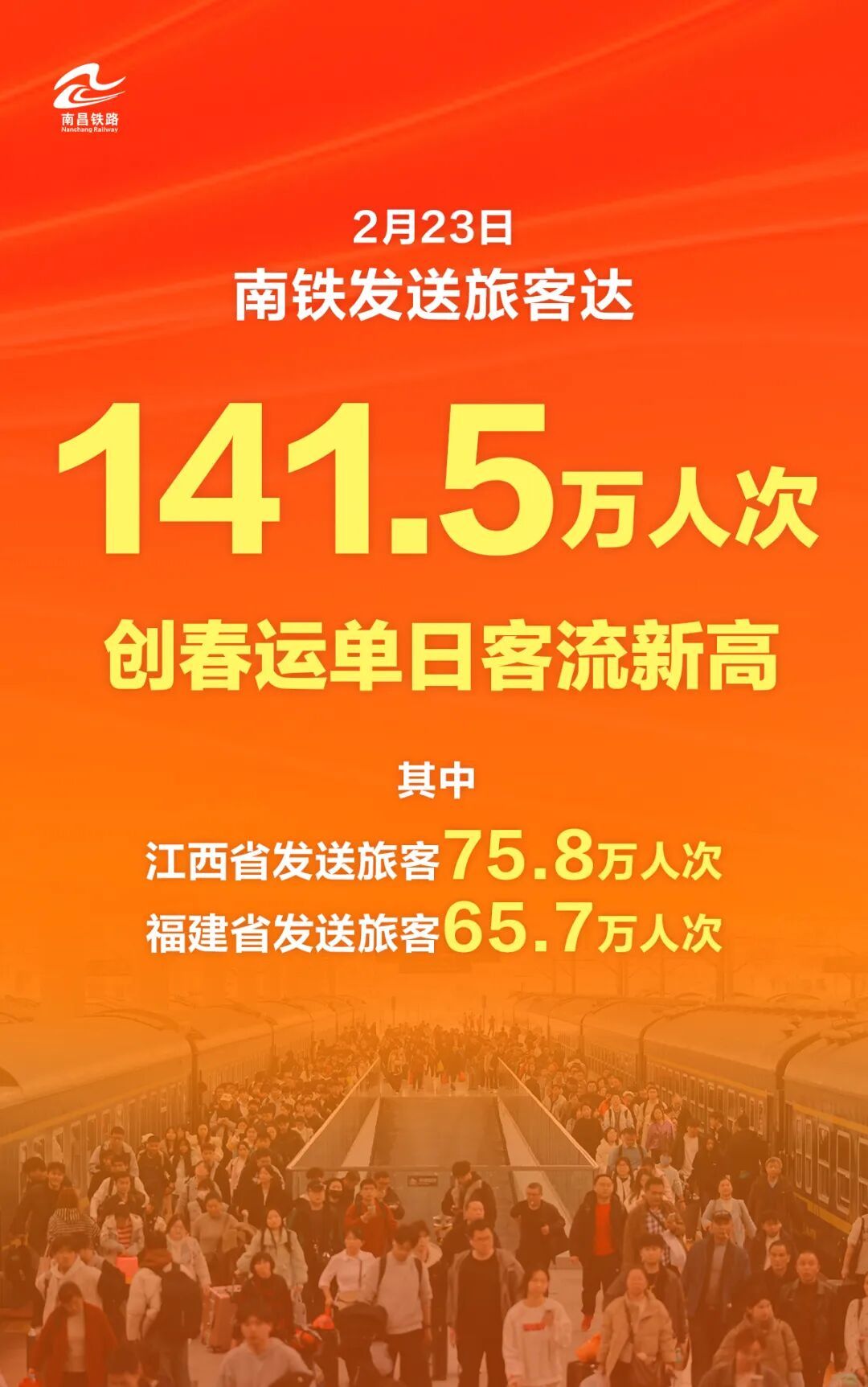 其中江西发送旅客75.8万人次