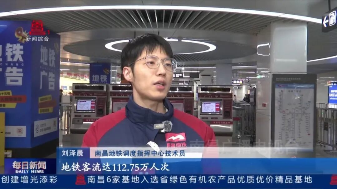 南昌地铁调度指挥中心技术员刘泽晨:“迎春烟花晚会当天地铁客流达112.75万人次,免费时段运送乘客36.55万人次。南昌地铁首次启用新春烟花晚会专项运行图,最小行车间隔压缩至1分58秒,2号线采用大小交路灵活运行,晚上八点半至运营结束,全线网释放闸机免费进出站,运营时间延长至23:30。”