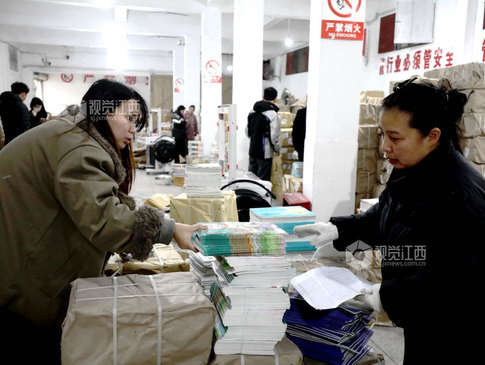 2026年2月26日,在江西省分宜县新华书店仓库,工作人员在清点整理新学期教材。新学期开学在即,分宜县积极做好学生教材接收、分发、配送等工作,为开学做好准备。 视觉江西 袁建兵 摄