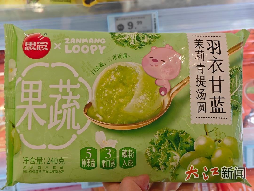 在超市内,陈女士给记者推荐了一款她的心头好,“龙井茶汤圆口味很清爽,我接连买了好几次。”也有的消费者说现在的汤圆馅料一眼望去像走进了奶茶店。