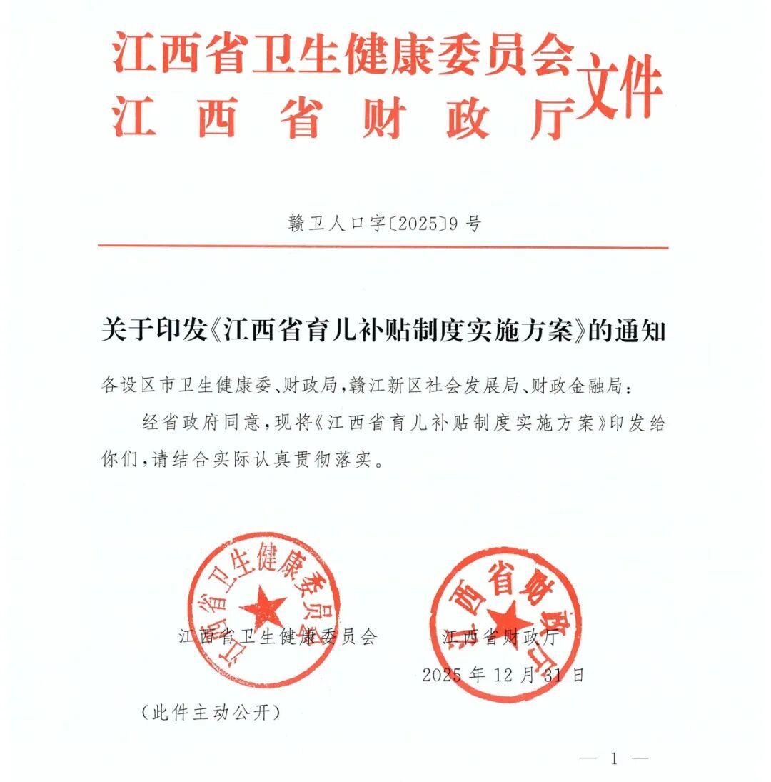 各位宝爸宝妈、准爸妈们,重磅好消息来啦!为积极推动生育友好型社会建设,切实减轻家庭生育养育负担,根据国家统一部署,我省已印发《江西省育儿补贴制度实施方案》!为符合条件的3周岁以下婴幼儿发放育儿补贴,真金白银助力每一个宝贝的健康成长。这份“育儿红包”怎么领?能领多少?赶紧来看看→