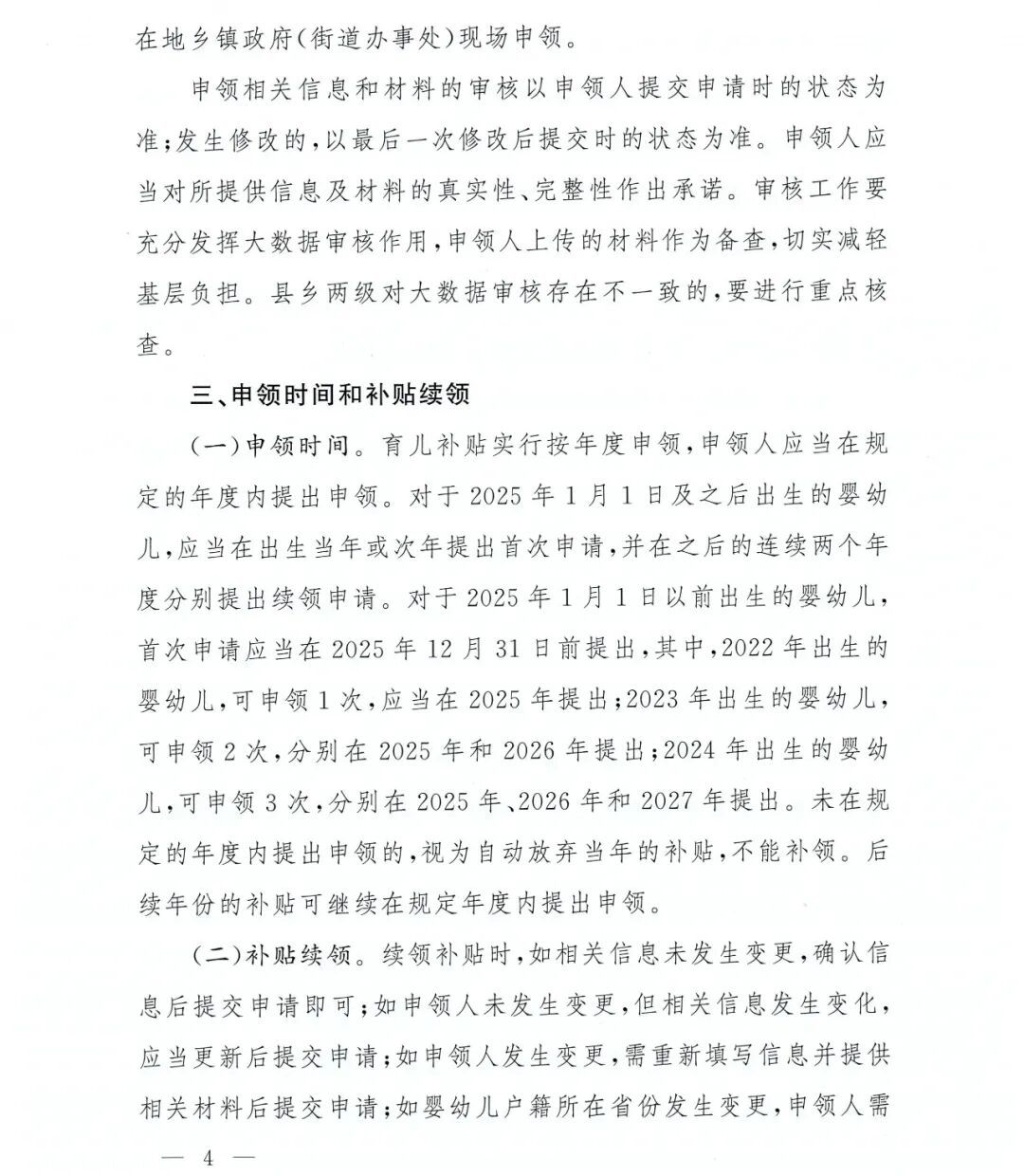 · 2025年1月1日及以后出生/收养的3周岁以下婴幼儿,可连续申领3年。