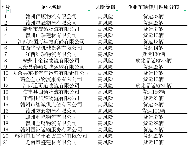 高危风险运输企业