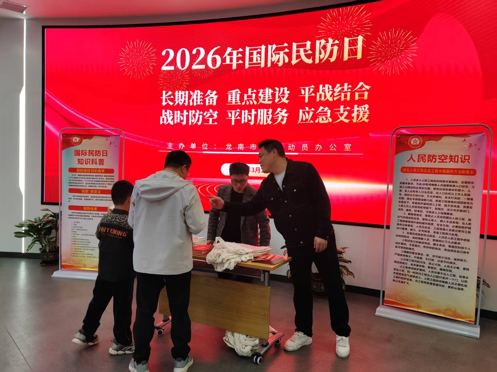 龙南市国防动员办在市政务服务中心开展主题宣传教育活动,面向群众普及民防与防灾减灾知识,提升公众应急避险和自救互救能力。活动现场通过设置咨询台、摆放宣传展板、发放宣传手册等多种形式,向办事群众讲解民防常识和防灾减灾知识,吸引不少市民驻足咨询、主动学习。