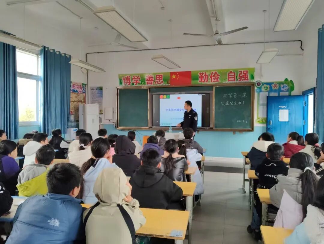 各派出所民警兼职的“法治副校长”、交警同步上岗,利用开学典礼、主题班会等契机,为师生们送上生动的“开学第一课”,用孩子们听得懂、喜欢听的方式,把安全的种子播撒进春天的心田。
