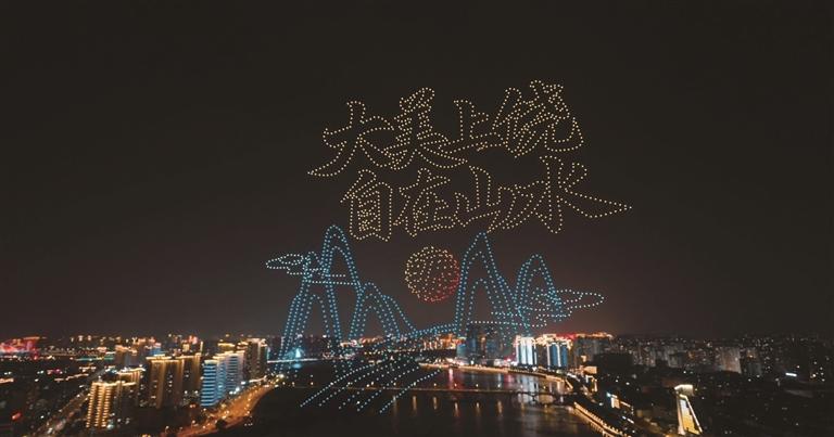 3月3日晚,“策马踏星河·光影耀三江”大型无人机表演在信州区三江公园上空璀璨上演。2026架无人机在空中展示各种造型,向全市人民传递美好的元宵节祝福。