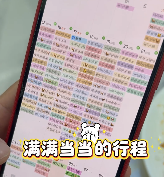 “过年那几天,每天都差不多20多单,累得头有点晕。”小仪笑着说。她的春节,是一张密密麻麻的行程表。
