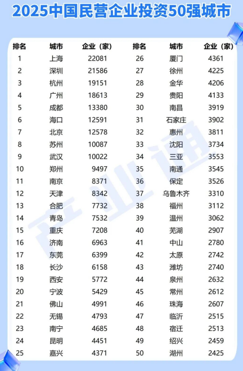 近日,南昌凭借民营经济发展的亮眼表现,成功跻身上奇研究院《2025中国民营企业投资50强城市》和《2025中国新设企业数量TOP50城》两大榜单,成为民营资本布局的重要节点城市。