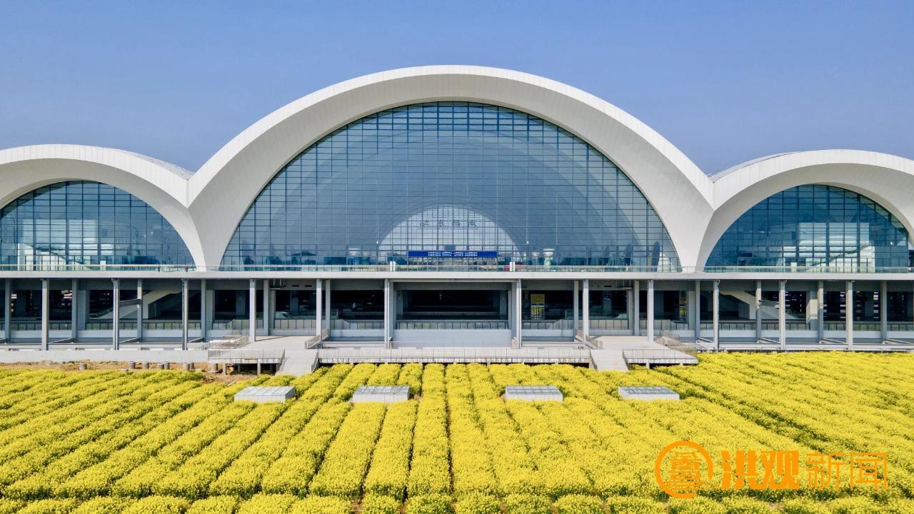 不仅郊野有花海,南昌城区及近郊也分布着多个便捷打卡的赏花点,让市民出门就能邂逅春日美好。东湖区扬子洲镇龙沙湾景区的220亩油菜花田,以七彩油菜花搭配三色堇,勾勒出灵动的江豚图案,创意十足,江畔落日与风车草帽相映成景,成为春日网红打卡地;青山湖区罗家镇南昌东站以南的220亩花田,与飞驰的高铁同框,地铁出站后步行即可抵达,是城市近郊的“春日小美好”。此外,南昌高新区、经开区、红谷滩区、湾里管理局也均有专属赏花点,覆盖不同区域市民的踏青需求,让金色花海成为城市周边的靓丽风景线。