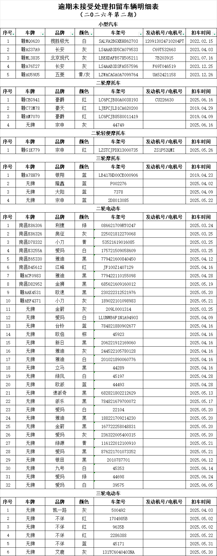 关于对逾期未接受处理扣留车辆进行依法处理的公告