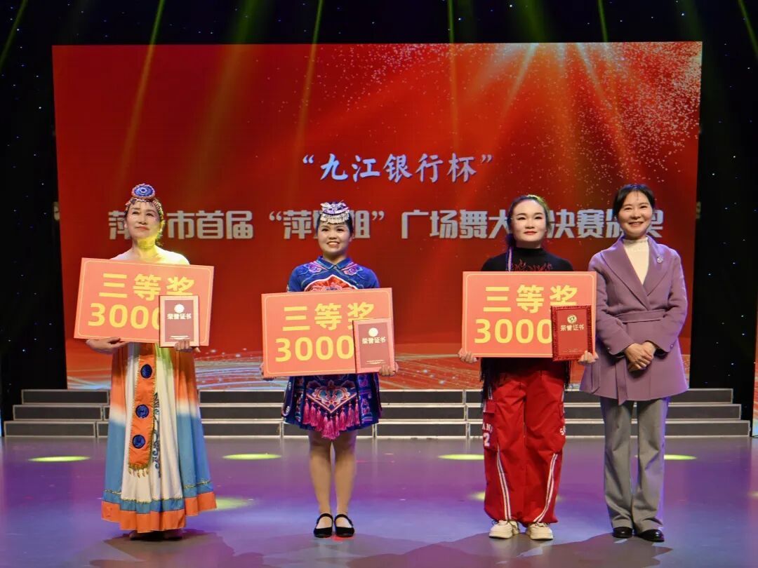启动仪式进入第二阶段,“九江银行杯”萍乡市首届“萍姐姐”广场舞大赛决赛在欢快的旋律中火热开场。由萍乡各县区妇联选送的9支广场舞队伍轮番登场,带来《幸福花开》《唱脸谱》《多彩的哈达》《山歌好比春江水》等精彩节目。队员们身着盛装、舞姿翩跹,用饱满的热情、整齐的动作,展现了新时代女性健康向上、热爱生活的巾帼风采,为现场观众呈现了一场精彩的视觉盛宴,更让“她力量”在这个属于妇女的节日里,绽放出最动人的光彩。