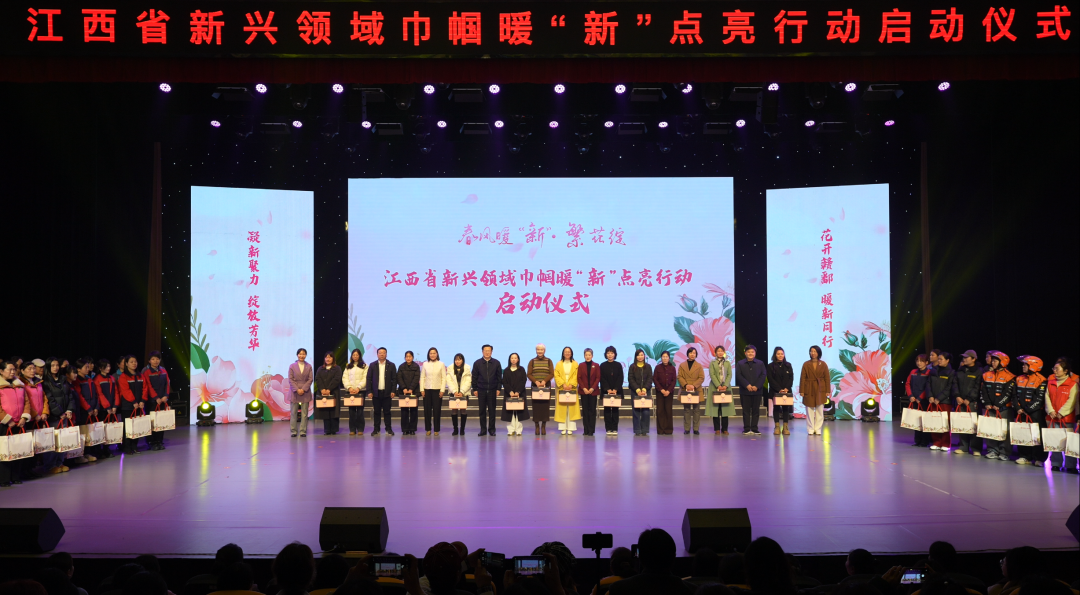 节目过后,与会嘉宾向新兴领域女性代表发放暖“新”包和暖“新”角爱心箱,将“娘家人”的体贴与关怀实实在在地传递到妇女代表手中。随后,全场目光聚焦大屏幕,来自全省各地市的娘家人暖“新”角负责人共同点亮暖“新”角地图——江西省791个娘家人暖“新”角同步亮起,为奔忙在一线的新业态女性筑起“暖心港湾”,让“娘家人”的关怀随时可感、触手可及。