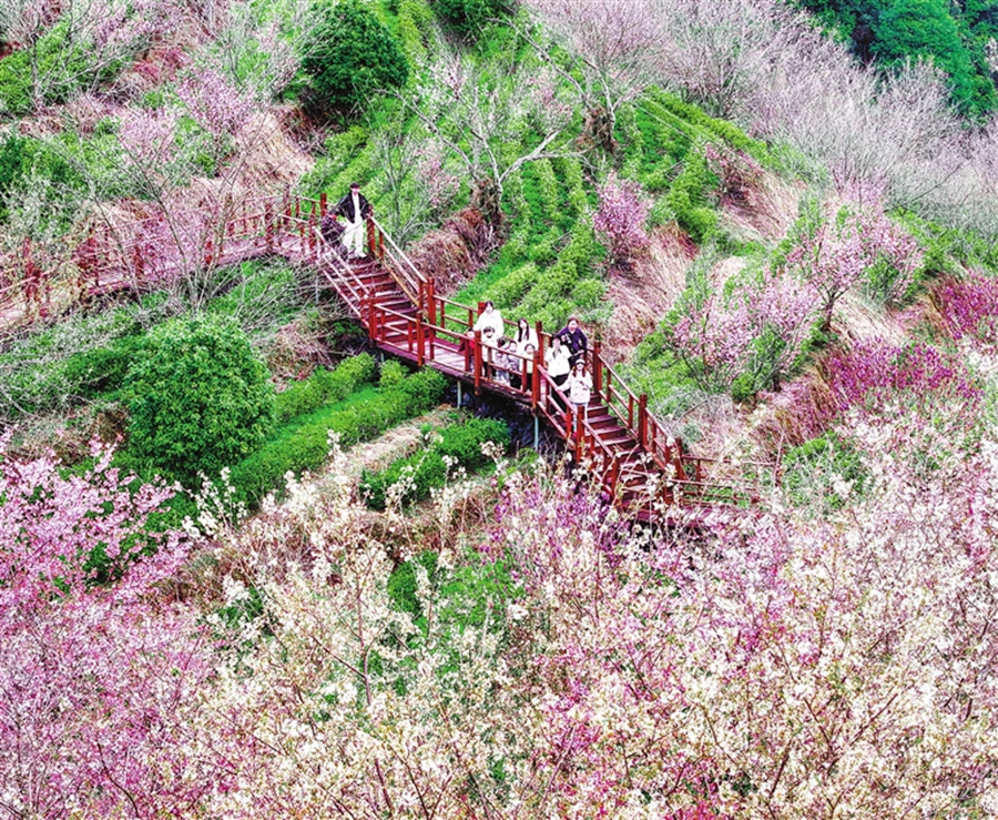 3月8日,崇义县乐洞乡龙归茶园的樱花迎来盛花期。连日来,新茶吐绿时,樱花簌簌开,灿若云霞的樱花点缀在层层叠叠的茶园间,美不胜收,游客踏春赏花,尽情享受美好春光。曾刘洲 摄