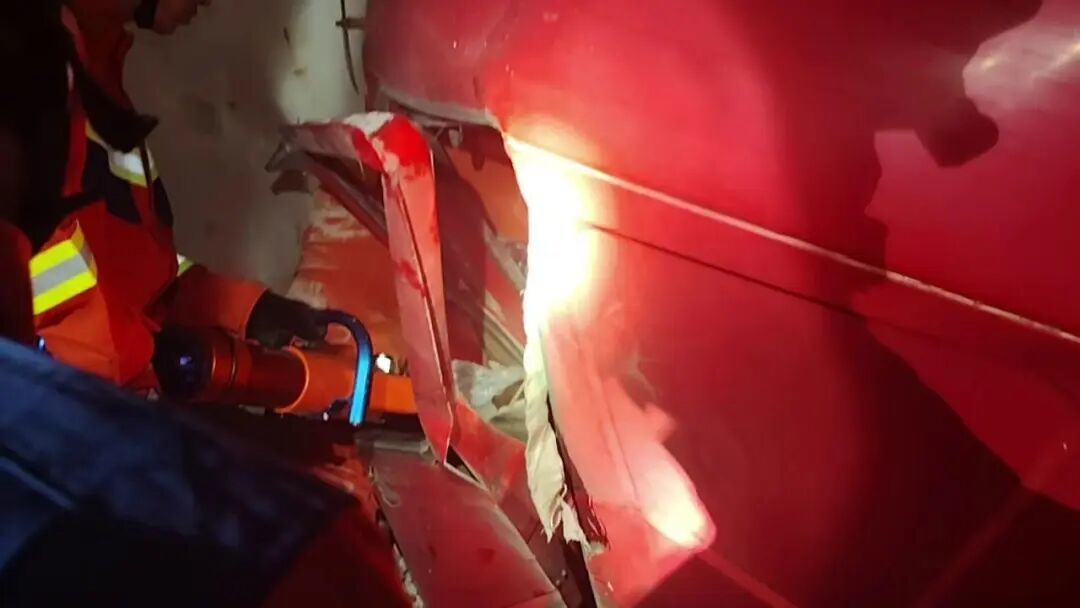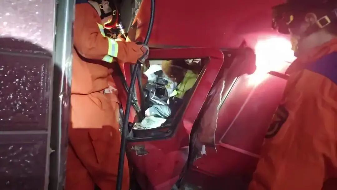 消防救援人员成功将被困驾驶员救出