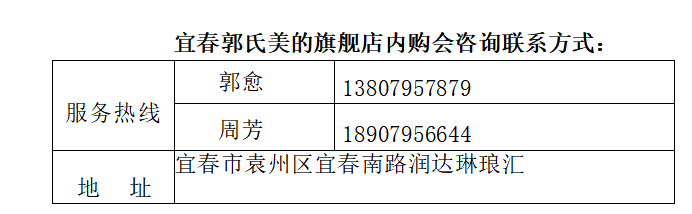 (四)内购会当日,宜春郭氏美的旗舰店将全天闭店,凭政企报名回执短信,到店享受内购会活动优惠。报名可以不买,报名后方可进场享受该专项补贴,报名后凭报名回执短信进店免费领取伴手礼一份。不报名无法参与,请务必提前报名。