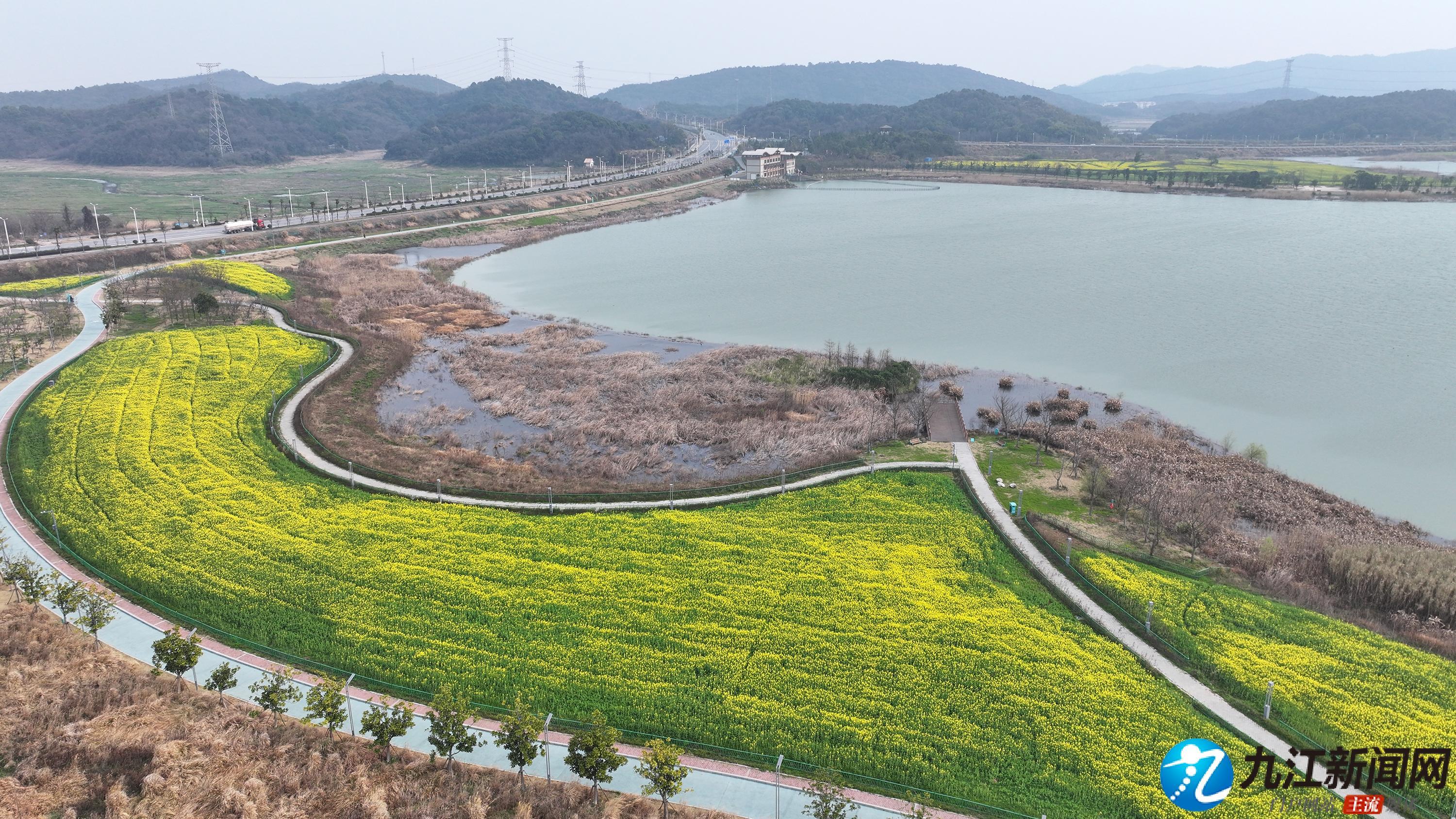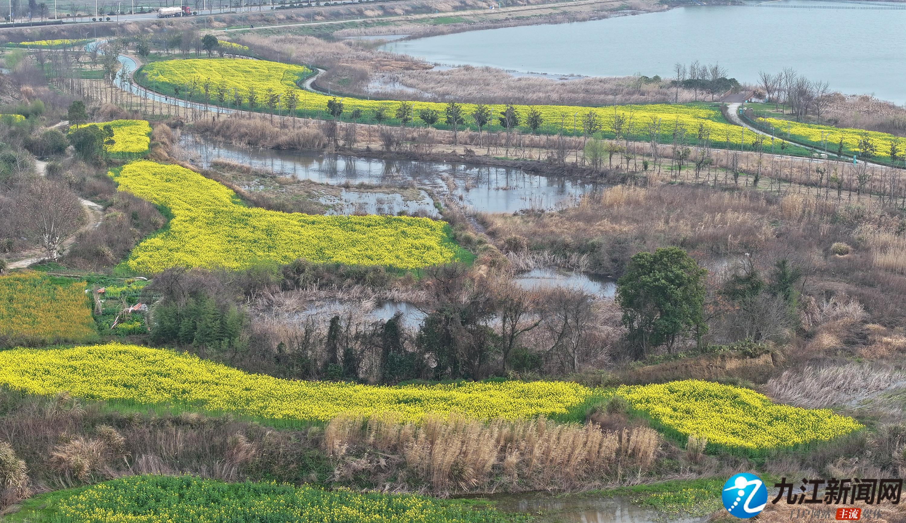 3月9日,芳兰湖公园里的油菜花迎来盛放,成为城区赏花的理想之地。放眼望去,金灿灿的油菜花在湿地周边星罗棋布,绘就出一幅春意盎然的生态画卷,迸发出勃勃生机。(九江日报全媒记者 刘家 摄)