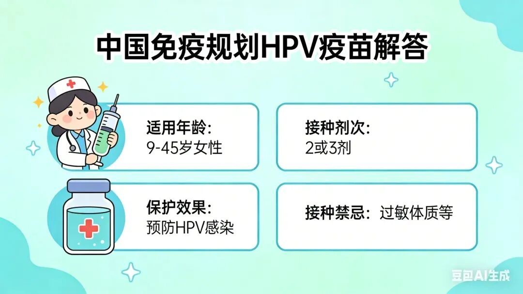 2025年11月10日,我国已将HPV疫苗纳入国家免疫规划,2011年11月10日以后出生的满13周岁的女孩免费接种两剂次双价HPV疫苗(间隔6个月)。