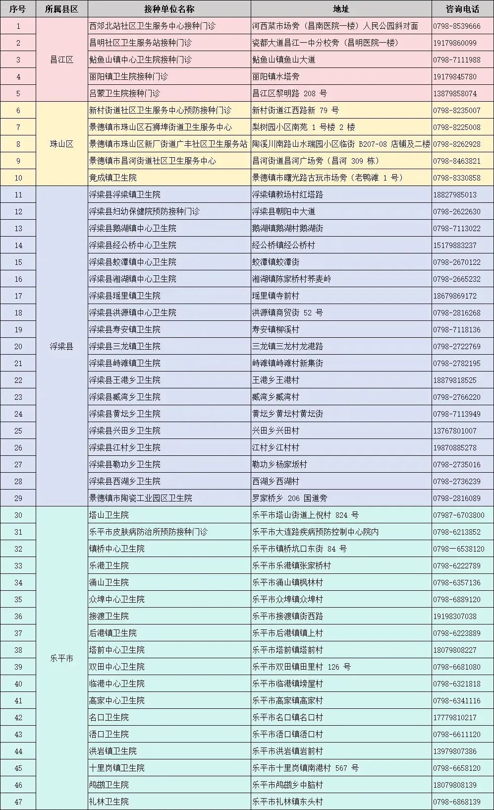 景德镇市疫苗接种地点