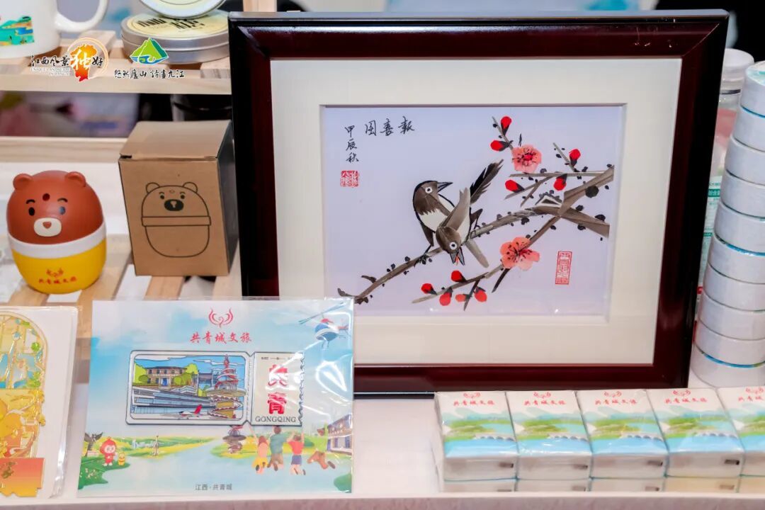 “这个香包好精致,是什么香味呀?”“羽毛画太精美了,真的是用羽毛做的?”“糕点好香,能尝尝吗?”……共青城文旅展位前,咨询声、赞叹声此起彼伏。