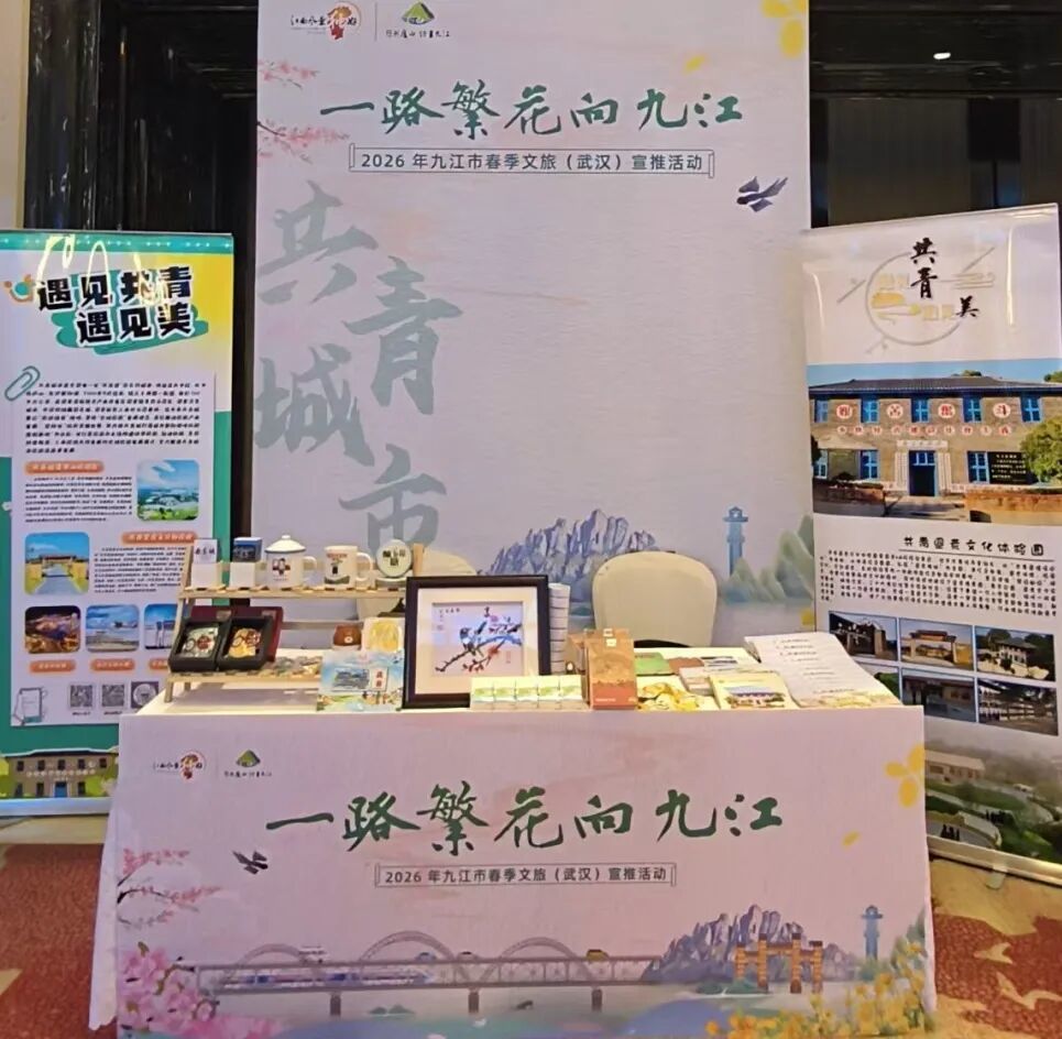 3月10日,武汉街头春意正浓,一场来自江西九江的文旅春风悄然吹进江城。由九江市文化广电旅游局主办的“一路繁花向九江”春季文旅宣传系列路演活动在武汉举行,共青城文旅带着满满诚意和独具特色的文创产品精彩亮相,吸引了不少武汉市民的目光。