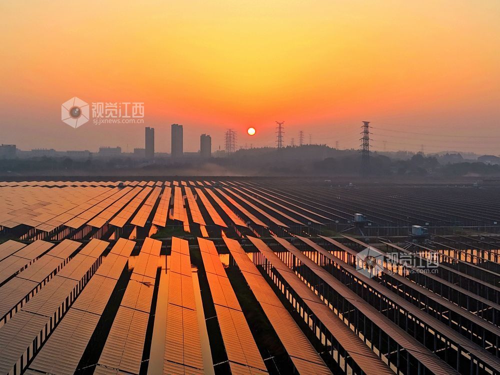 2026年3月11日,在江西省赣江新区新祺周管理处江夏分场千亩“渔光互补”光伏发电站,一排排光伏电板在朝阳映照下,如同披上黄金甲,熠熠生辉,美丽壮观。近年来,赣江新区坚持生态优先、绿色发展理念,大力发展光伏发电等绿色清洁能源,通过清洁能源的有效利用,助力绿色低碳发展。 视觉江西 袁 骏 摄