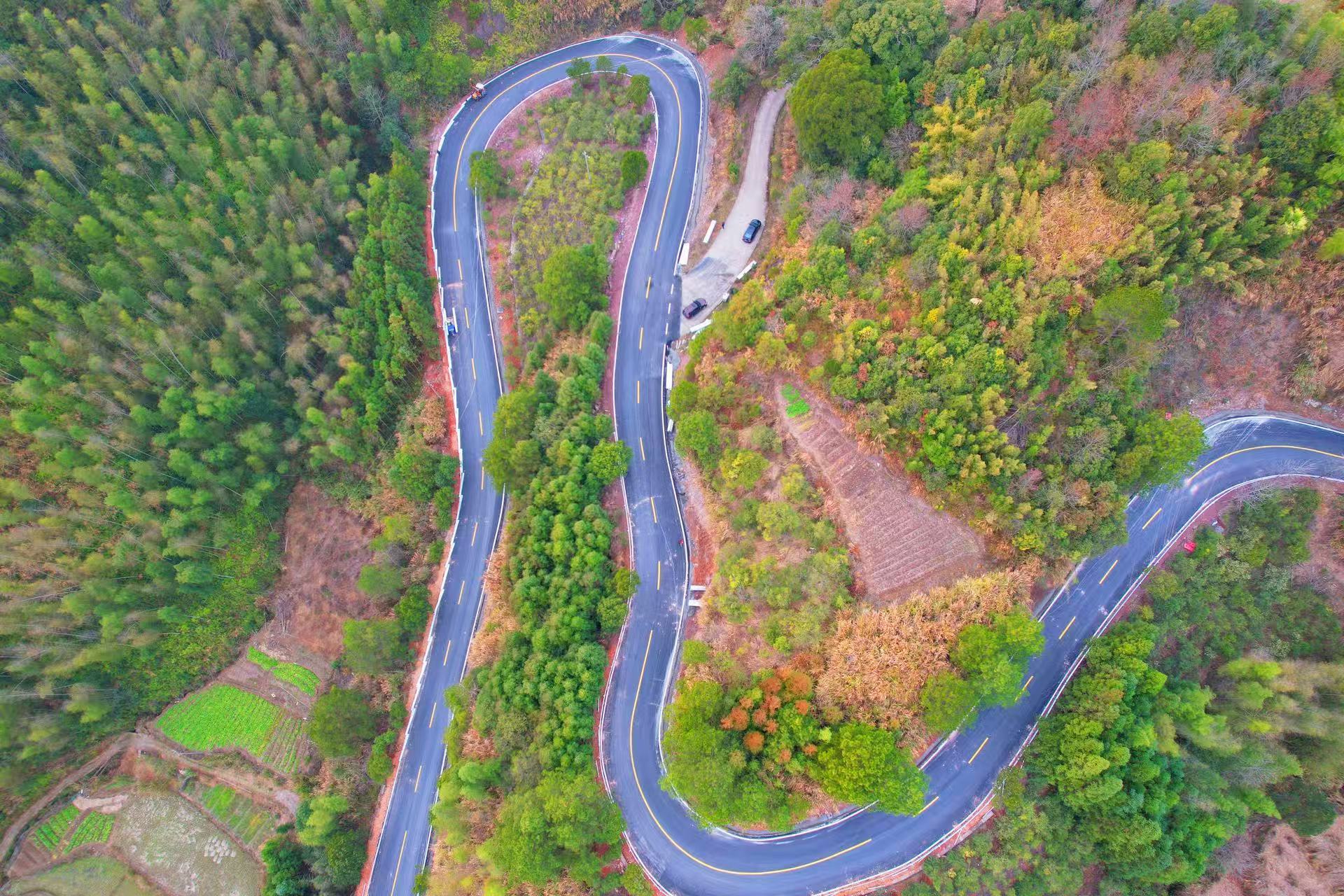 新修好的农村公路蜿蜒穿行于青山之间。摄影|通讯员姚小林
