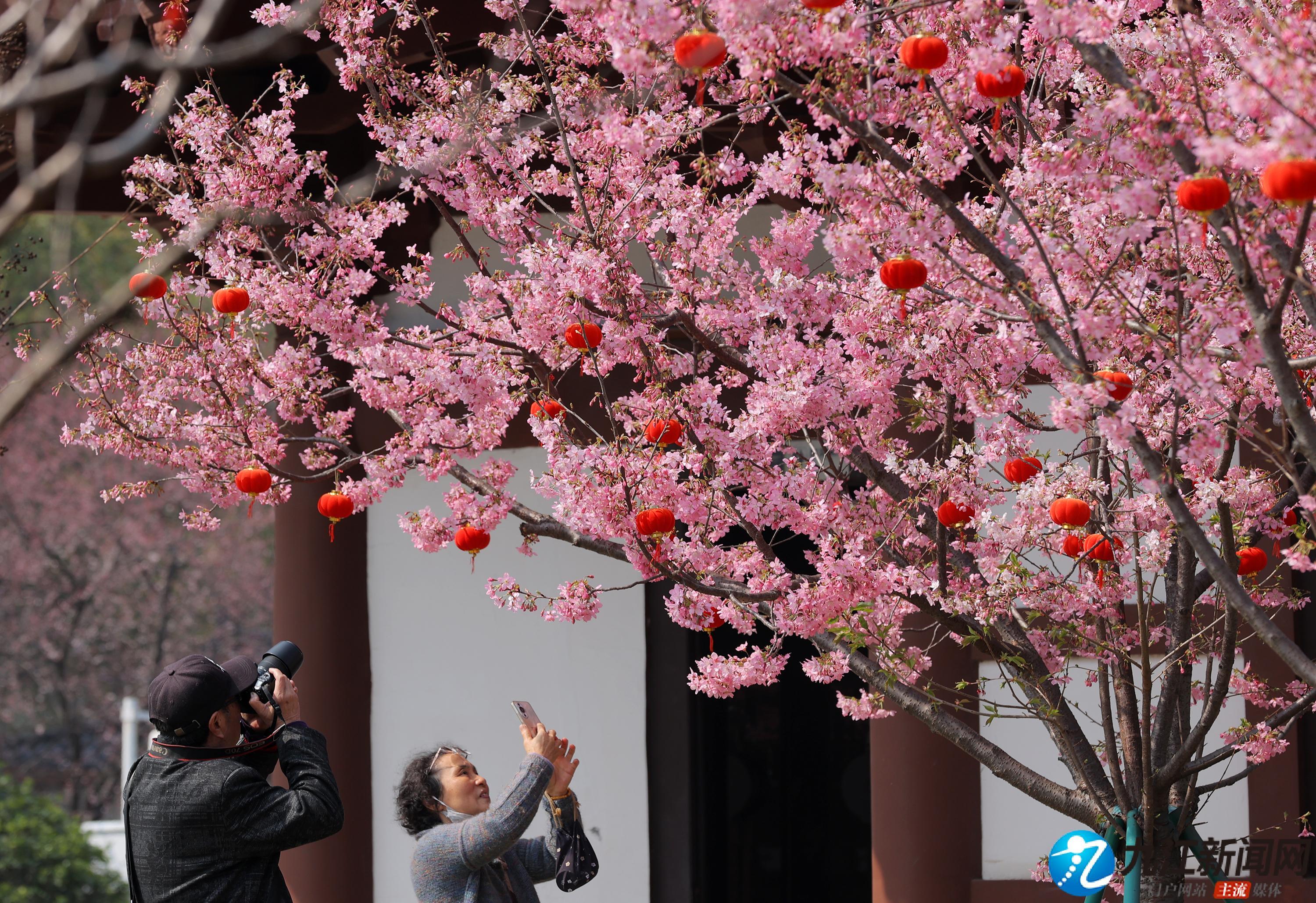 3月12日,琵琶亭内的樱花如期盛放,灿若云霞的花朵与古色古香的建筑相互映衬。亭台楼阁旁,一树树繁花或白或粉,花枝在微风中摇曳,与朱红色的廊柱、飞翘的檐角相映成趣。古典园林的隽永与春日的浪漫在此刻交融,吸引了众多游客和市民驻足观赏,大家纷纷拿出手机、相机,在镜头里定格下这唯美春光。(九江日报全媒记者 刘家 摄)