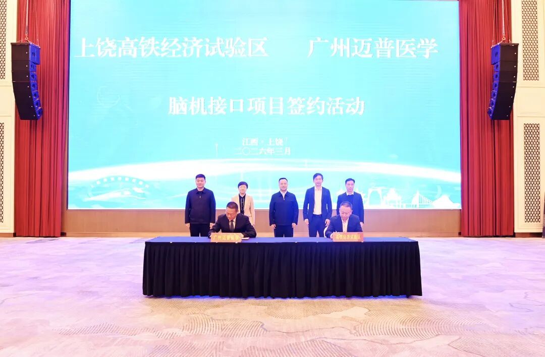 签约活动中,上饶高铁经济试验区和广州迈普再生医学科技股份有限公司签署了新一轮深化合作协议。根据协议,双方将共同出资设立脑机接口项目和相关合资公司,落地高水平研发中心,锚定脑科学前沿,聚焦临床转化,建设集基础研究、技术开发与临床验证于一体的创新平台,构建从研发到应用的全链条体系,推动更多高端链条项目加速集聚,为上饶建设制造强市、打造区域中心注入强劲动能。