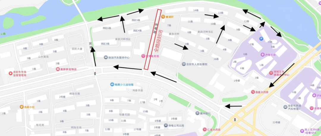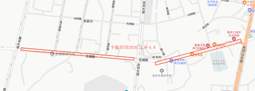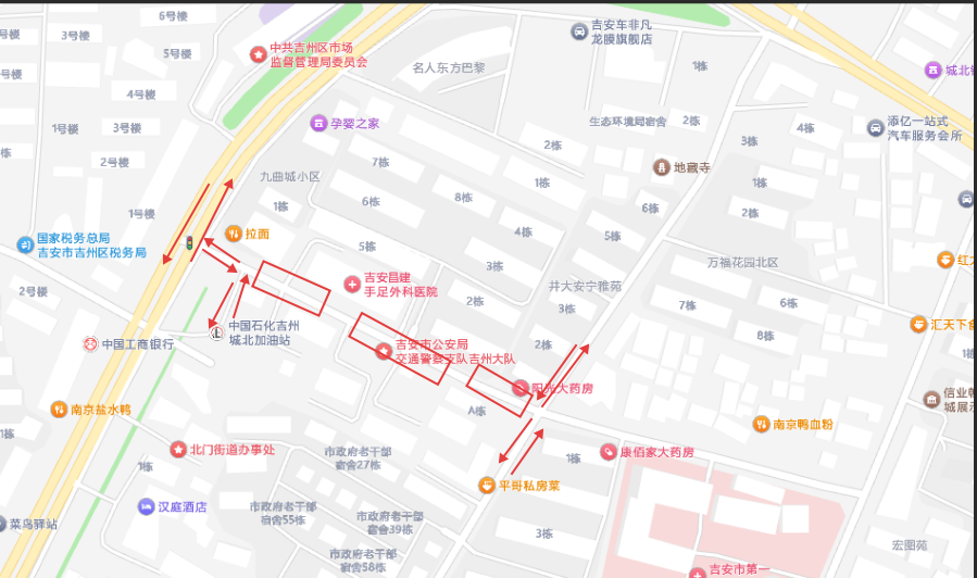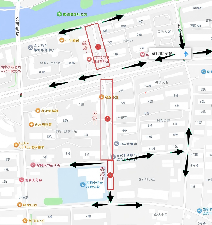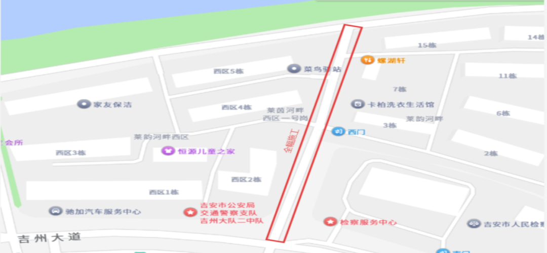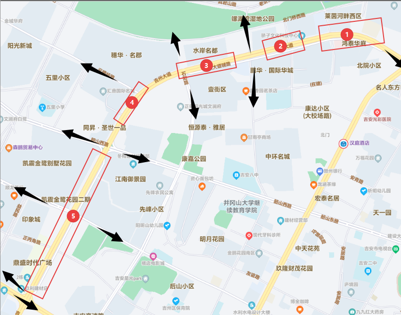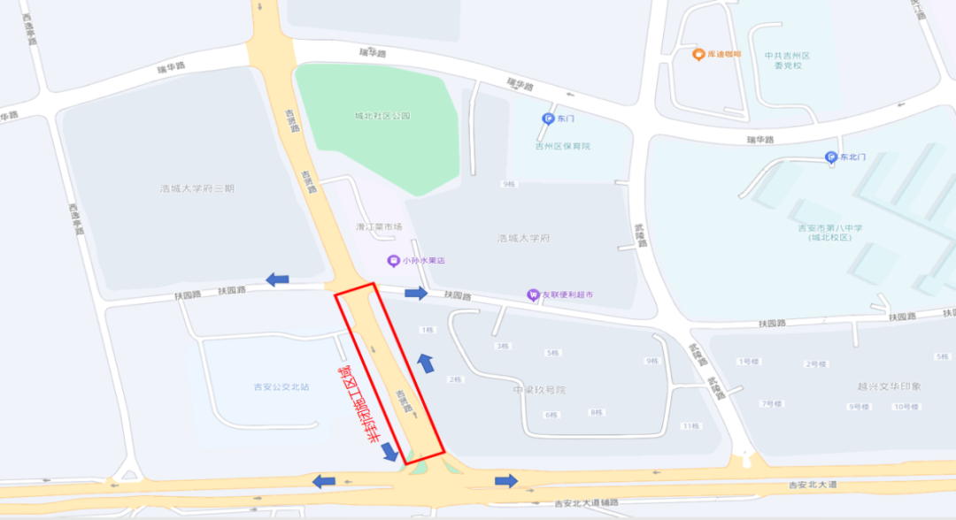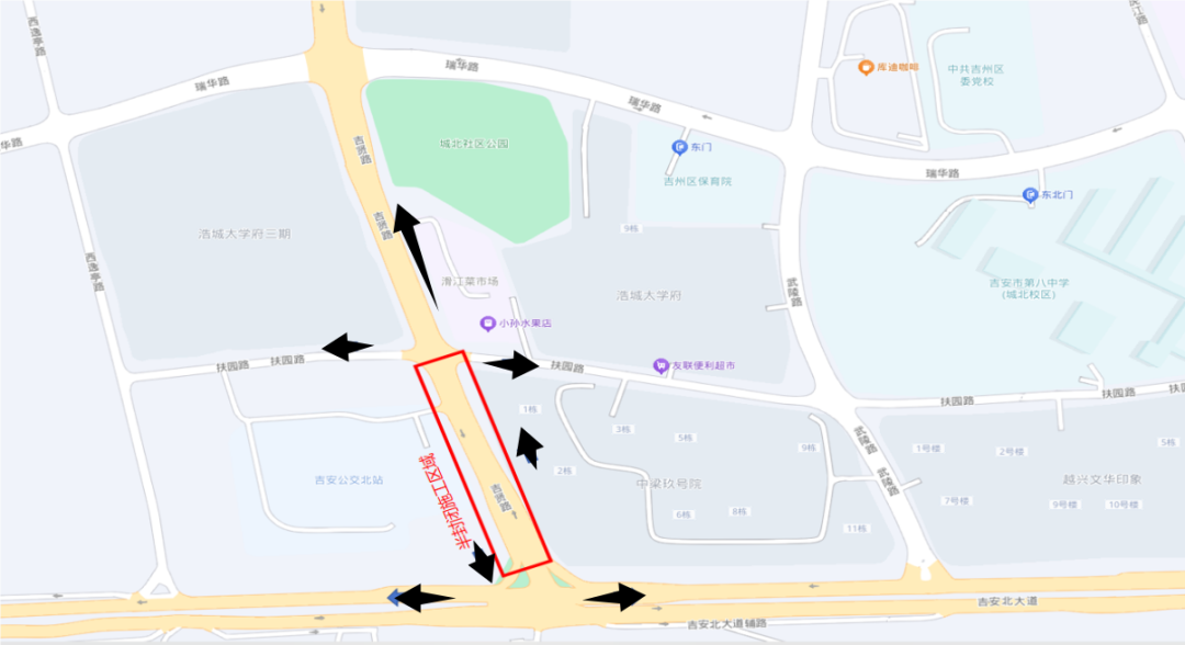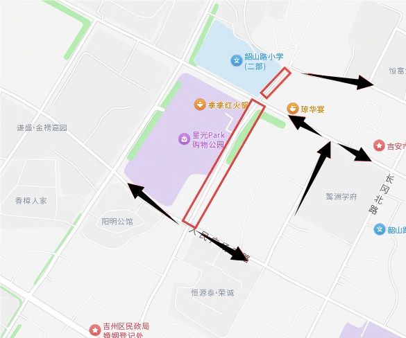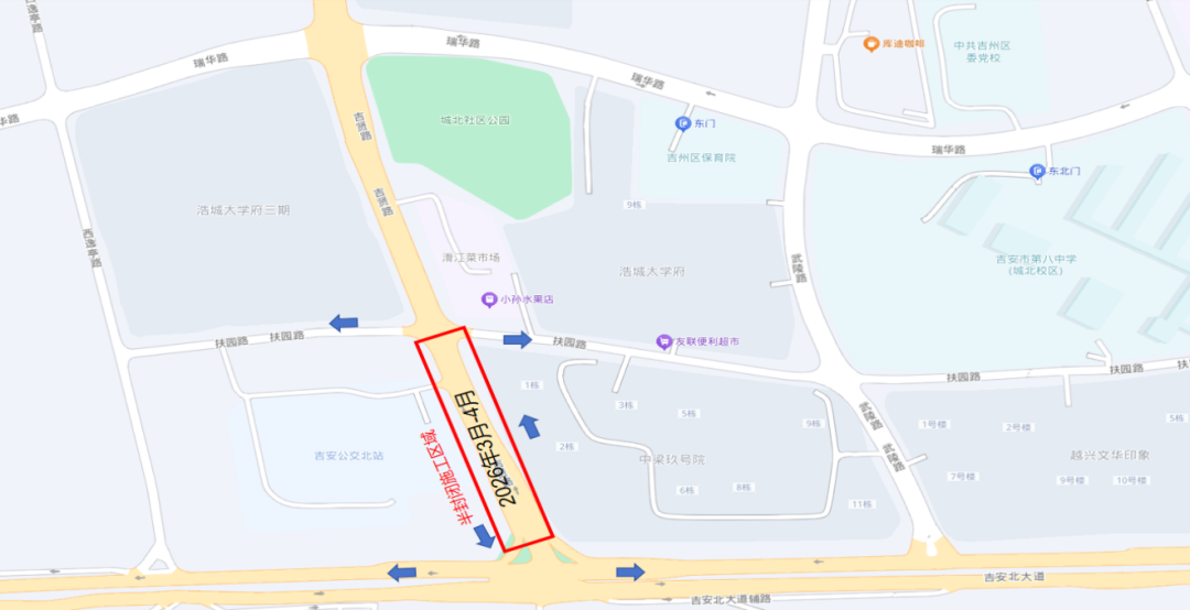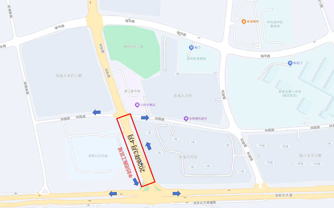 吉贤路:绕行路线:扶园路→吉安北大道