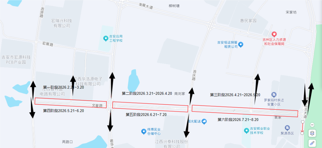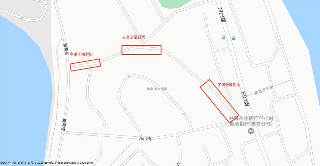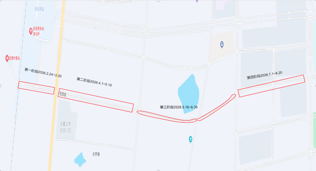 4. 吉柴路(螺湖路-沿江路)双向两车道,实施辅道分段封闭施工。