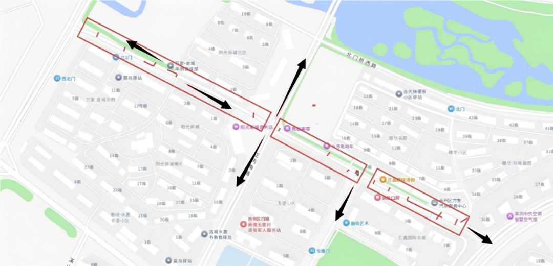 绕行方案线路三:君华大道→文星路→吉贤路、吉庆路