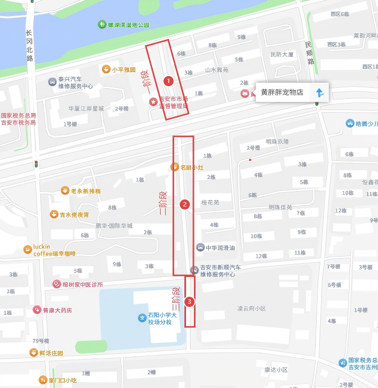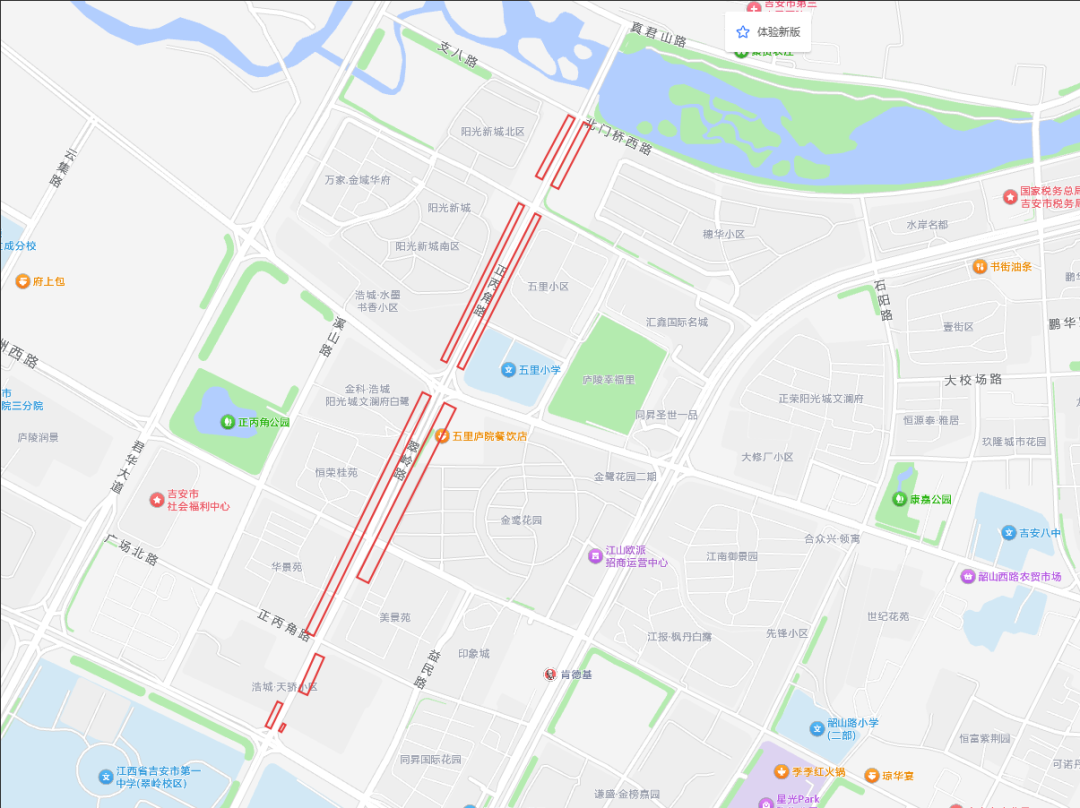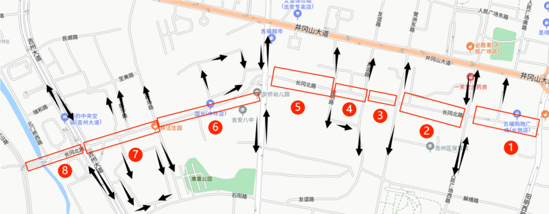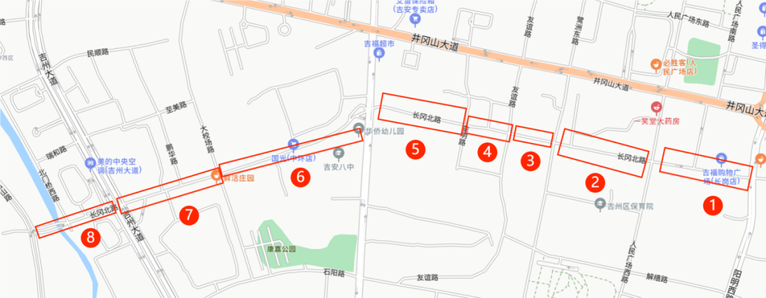 瑞和路:绕行方案线路一:北门桥西路→长岗北路/民顺路→吉州大道