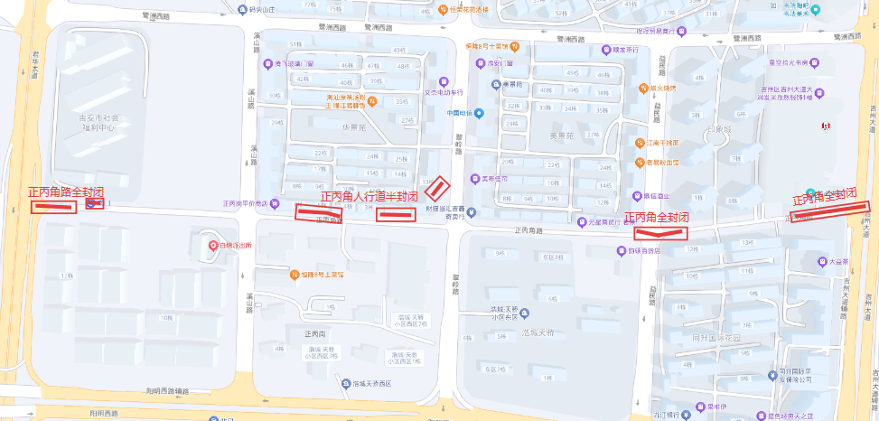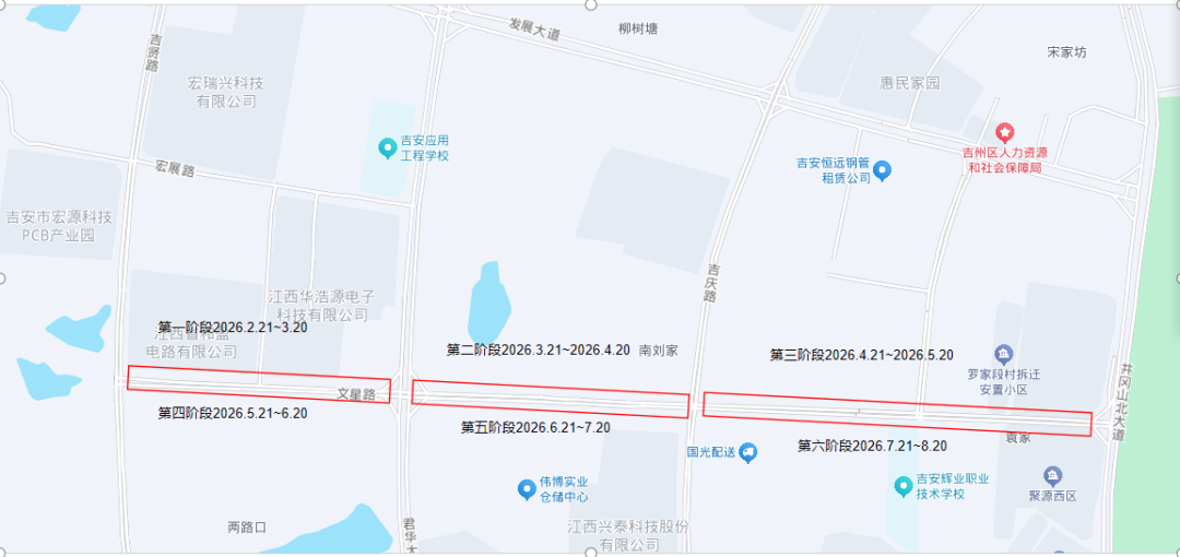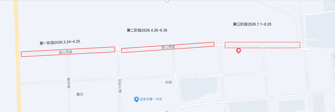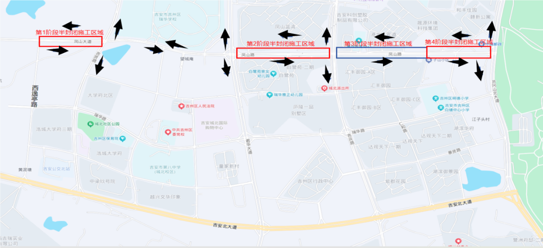 19. 吉贤路(吉安北大道-凤山路)双向四车道,实施全幅封闭施工。