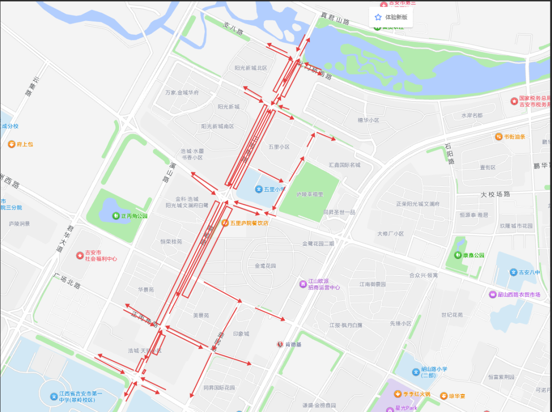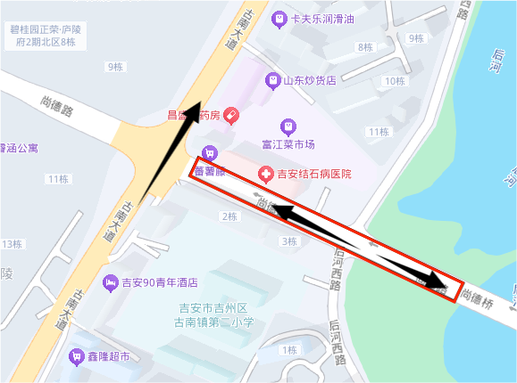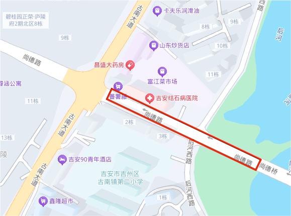 后河东路:绕行线路一:吉安南大道→跃进路