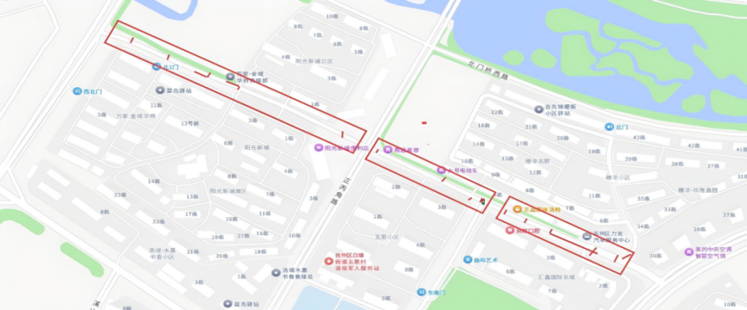 吉州大道:非机动车绕行主道或人行道。