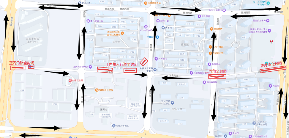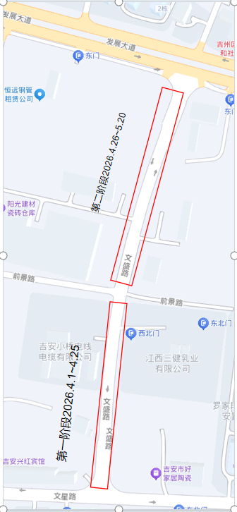 5.平安路(井冈山大道-北门街)双向两车道;主道分阶段道路封闭施工。