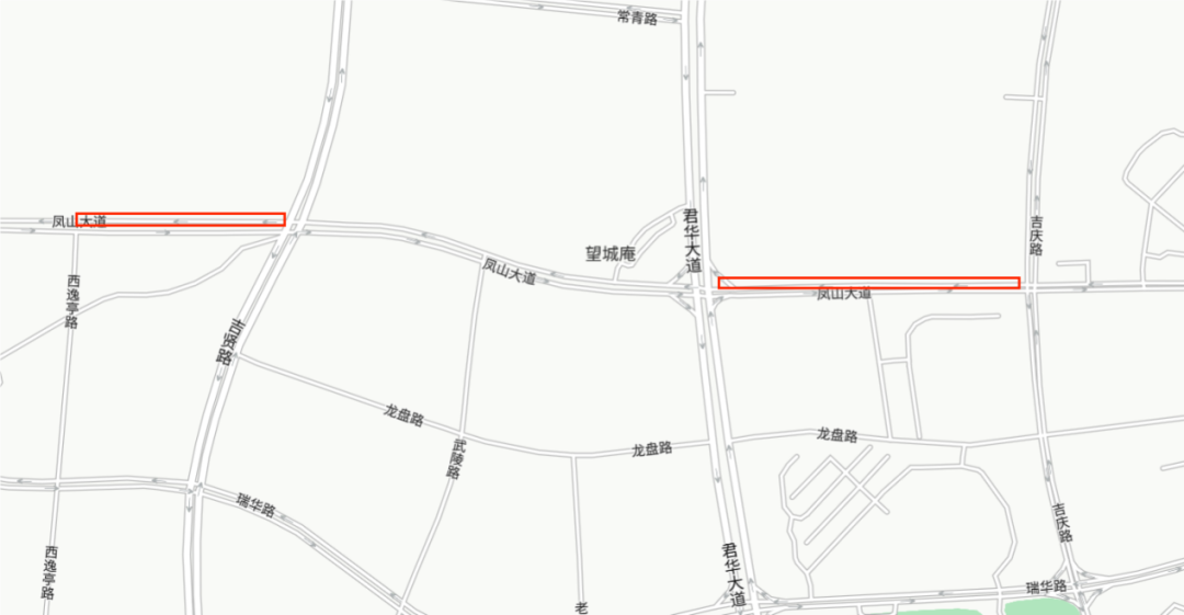 凤山路:绕行路线:西逸亭路→吉贤路→君华大道、井冈山大道