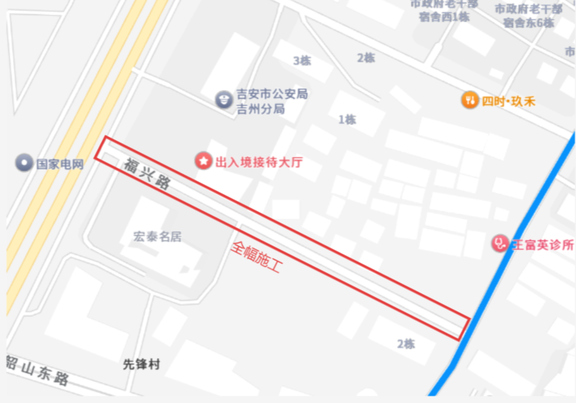施工期间,正丙角路、吉州大道、长岗北路、吉柴路、平安路、翠岭路、文星路、吉贤路、库背西路、韶山西路、文盛路、兴贤路、翠屏路、吉福路、尚德路、后河东路、真君山路、凤山路、吉贤路、君华大道、扶园路、武陵路、西逸亭路、长兴路、长胜大道、真君山路、瑞和路、云腾岭路、解缙路、纳福路、福兴路部分路段机动车限速通行,同时对管控区域实施交通管制。
