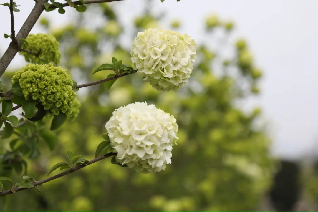 走进木绣球基地,仿佛置身一片绿色的海洋。放眼望去,一株株中华木绣球枝干挺拔,枝头缀满圆润饱满的青白色花苞,层层叠叠、错落有致。春风拂过,花苞轻轻摇曳,既有蓄势待发的生机,又不失含蓄内敛的雅致。