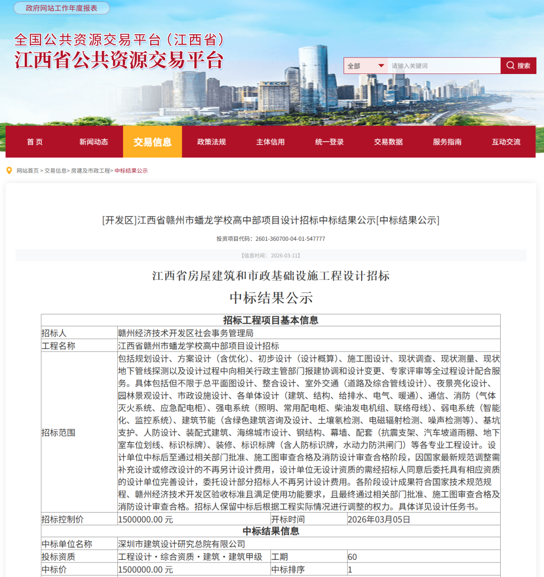 近日,赣州市蟠龙学校高中部项目设计招标顺利完成,中标单位为深圳市建筑设计研究总院有限公司。这标志着赣州经开区又一所高中进入实质建设阶段,建成后将进一步扩充区域高中学位供给。